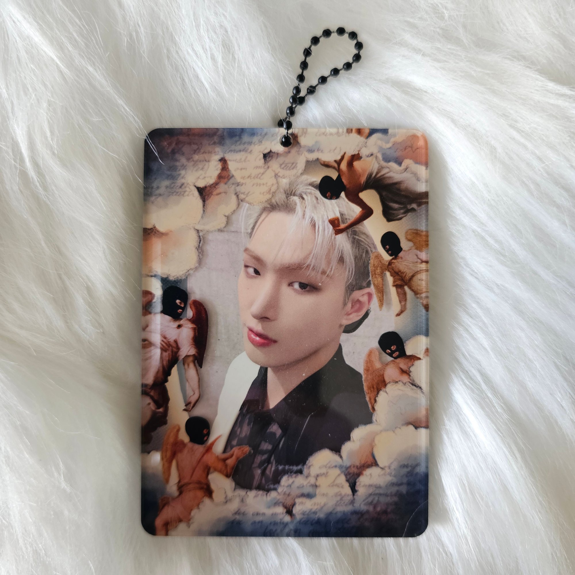 Acrylic Photocard Holder inspired by the music video for ATEEZ’s title track song “Ice On My Teeth” from their album “GOLDEN HOUR : Part.2”. The design features cursive song lyrics, the music videos’ chandelier, & the Renaissance meets mafia aesthetic seen in the music video & across comeback promotions. The cut-out on the back is in the shape of a tooth.