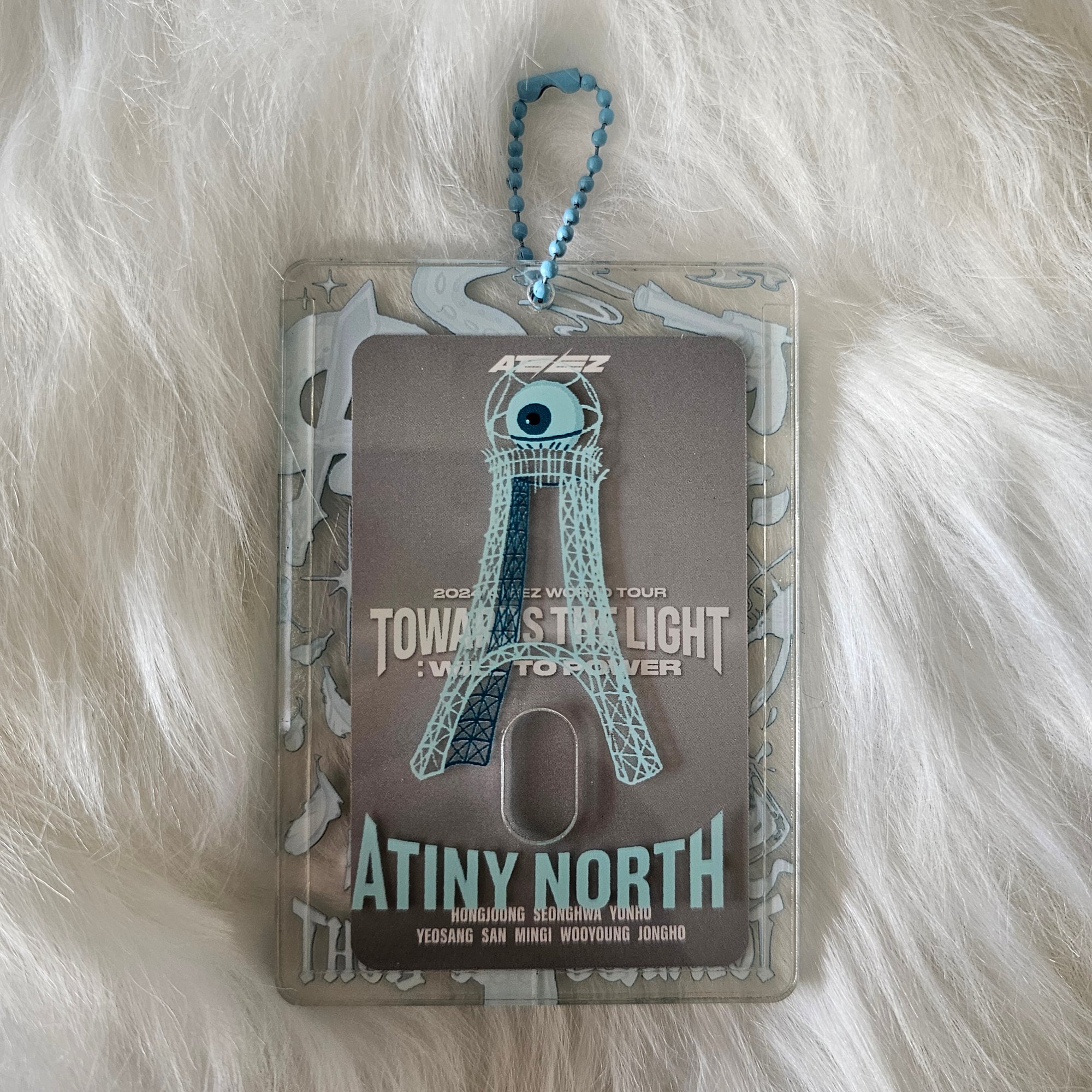Acrylic Photocard holder inspired by ATEEZ’s “Towards The Light : Will To Power” concert tour. The design features multiple pieces from the concert & performances, such as the kraken tentacle & Seonghwa’s sword, the outstretched hand & tower as seen in the set design, Jongho’s rose + a drink from “Arriba”, an 8-pointed star to represent all 8 members, & more.